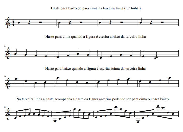Regras de Escrita das Figuras Musicais com Hastes