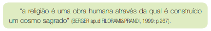 Em sua definição, Berger contempla tanto o aspecto transcendental quanto o cultural (obra humana). Prosseguindo nesse raciocínio, cabe a explicação etimológica da palavra religião. A partir de um pensamento de Santo Agostinho o qual nos propõe que liguemos nossa alma a um único Deus, temos hoje a associação da palavra religião a “religar”. Ligar o que a quê? Ligar o mundo sobrenatural, sagrado, ao mundo humano, ou profano, fazer-nos crer (e este é um aspecto fundamental da religião: a fé), que nós mortais não estamos sozinhos no universo, que há um sentido para a vida, e que cabe a cada um de nós tentarmos descobrir a que viemos.