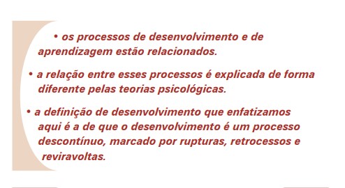 E mesmo admitindo-se que cada indivíduo tenha seu próprio ritmo de desenvolvimento, esse ritmo é concebido como sendo constante. Ou seja, com essa concepção é negada ao indivíduo a possibilidade de mudança na maneira de ser. O que estamos propondo neste curso é uma visão do desenvolvimento que parte do princípio de que o desenvolvimento é um processo descontínuo, desordenado e acontece em saltos.
