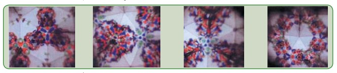 Com simples movimentos nesse objeto, podemos produzir uma infinidade de padrões de imagens que se modificam simetricamente pela projeção dessas imagens nas paredes dos espelhos. Elas são muito parecidas com as imagens criadas pela Op Art. Mas como essas imagens se formam?