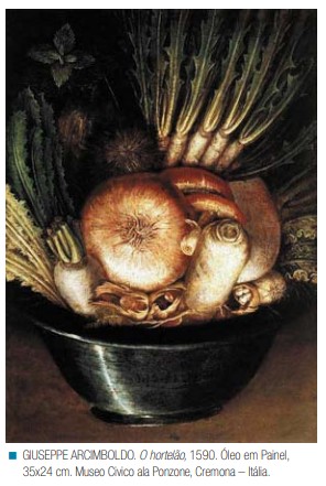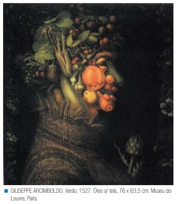 O que você vê agora? A pintura de Arcimboldo é impressionante. Composições com frutas, animais e outros objetos formam figuras grotescas e divertidas, uma verdadeira caricatura da vida humana.