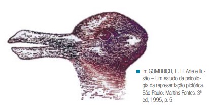 Apesar de não ser difícil de distinguir as formas, não podemos enxergar as duas imagens ao mesmo tempo: ou vemos o pato ou o coelho. Os efeitos que conhecemos como ilusão de ótica são divertidos e curiosos, porém aos nossos olhos são um mistério a desvendar. O olho humano funciona de uma maneira muito parecida com a de uma máquina fotográfica, a diferença é que a imagem da câmera fotográfica é revelada e podemos ter uma imagem permanente do objeto, enquanto que, as imagens captadas pelo olho humano são constantemente levadas ao cérebro onde são interpretadas. Cada imagem captada pelo olho humano vem carregada de nossas impressões e pelo que sabemos a respeito do objeto. Conforme as palavras de GOMBRICH (1995, p. 233), não conseguimos separar o ver do saber.