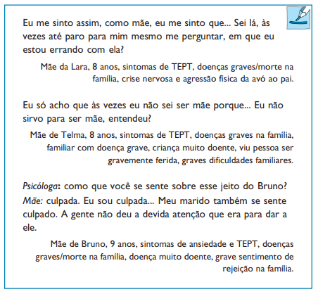 O atendimento à criança e sua família se complica quando os sintomas ansiosos estão associados à vivência de violências, como ocorre especialmente entre crianças com TEPT. Muitos profissionais generalistas pensam que não é tarefa deles atender essas crianças com problemas “específicos dos profissionais de saúde mental”, ainda mais se acompanhado de história de violência, este sim, um problema dos “cientistas sociais”.