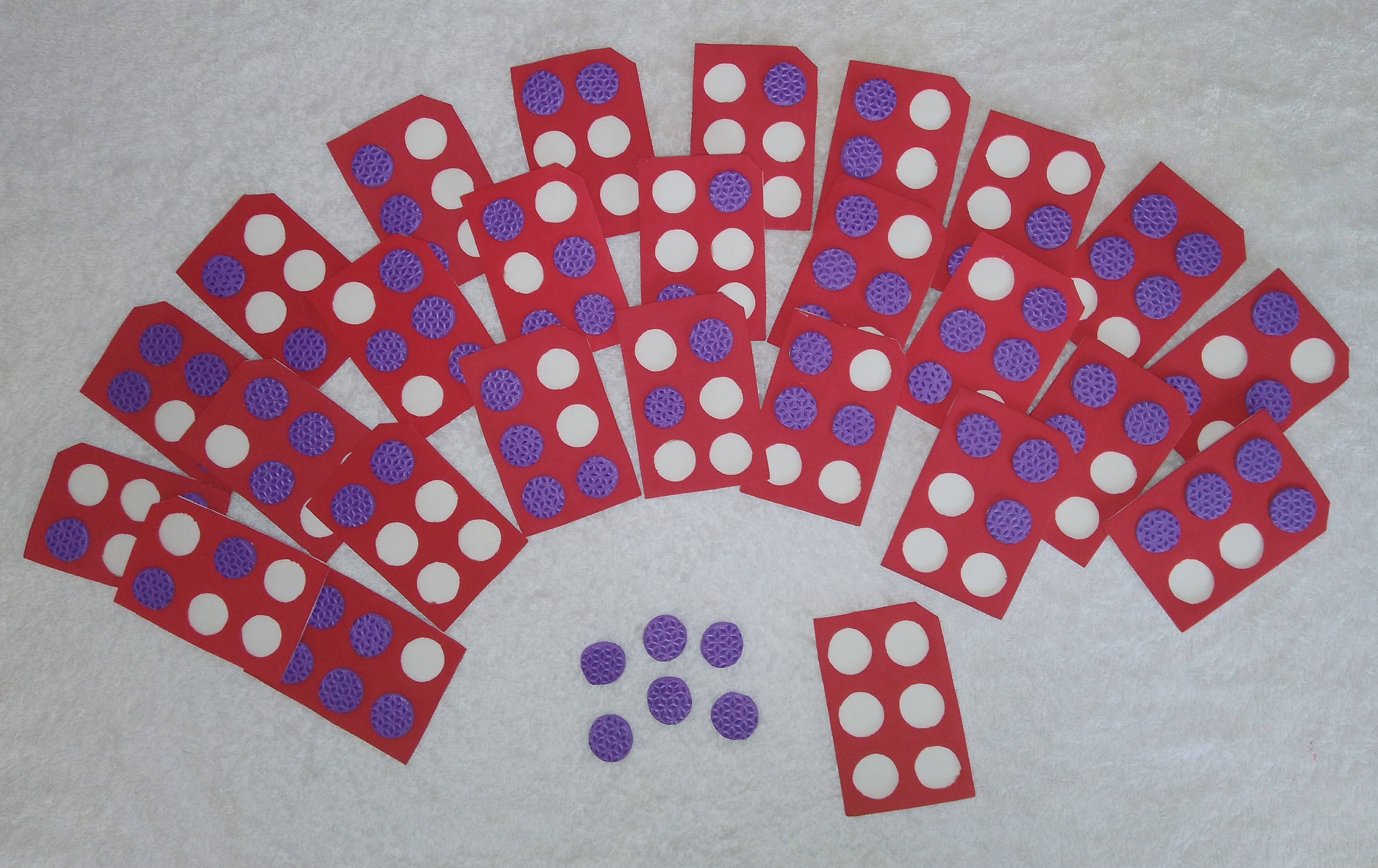 Para as bolinhas que formarão os pontos das letras, é recomendado o uso de EVA com maior espessura. Isso é necessário para que os pontos fiquem em relevo, permitindo que, ao passar os dedos sobre eles, a criança sinta claramente os pontos mais altos no meio da cela.