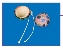 Duas metades da casca de um coco, decoradas na parte externa com papéis coloridos. A parte interna é forrada com espuma para aumentar a espessura e ficar macia. Os dois lados da borda são furados para que se passe neles um cordão. Dois cordões de 15cm são amarrados nas laterais e servem para prender o brinquedo no braço da criança.