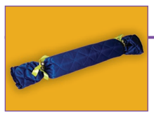 Rolo de aproximadamente 14cm de diâmetro e 50cm de comprimento, feito com uma toalha de banho enrolada. Acolchoado na parte externa com espuma e revestido de tecido colorido, arrematado nas duas pontas por laços de fitas coloridas nas quais se prende um guizo.