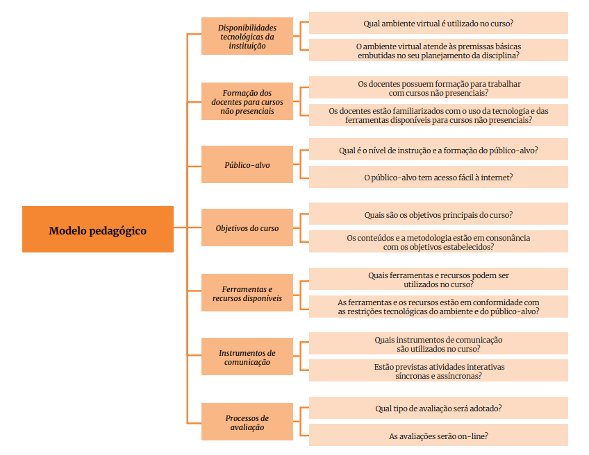 ◼ Elementos computacionais: devem ser compatíveis com a demanda do curso quanto à disponibilização das ferramentas para os processos de interação no ambiente virtual e no modelo pedagógico utilizado.