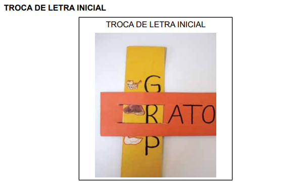 Esse jogo tem como finalidade evidenciar que algumas palavras podem ter a mesma finalização diferindo apenas a letra inicial. A ficha que será manipulada contém a letra e a figura do elemento que a palavra formada representa, a fim de favorecer que a criança faça sua leitura mesmo que seja indutiva.