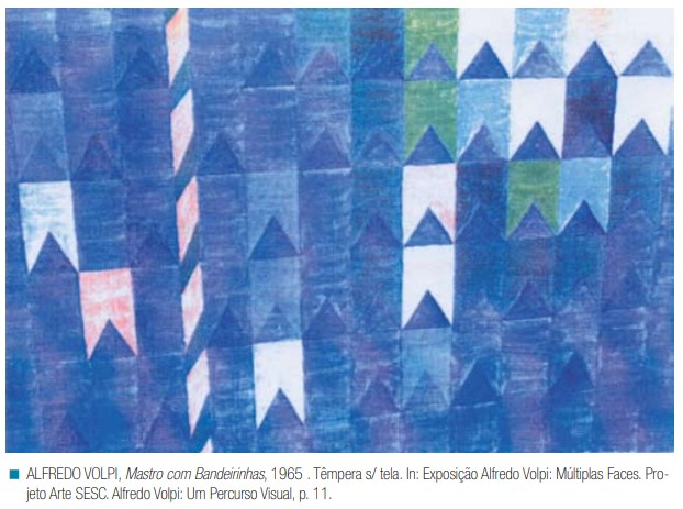 De todos os artistas mencionados até agora, Volpi foi o único que não estudou em academia, aprendeu a pintar sozinho, um autodidata que desenvolveu um estilo próprio. Produzia sua própria tinta e suas telas. Foi o pintor que melhor retratou a simplicidade e as singularidades do povo brasileiro, a fachada das casas e as bandeirinhas que permanecem no imaginário popular. Na sua opinião, tanto Portinari na obra Os Retirantes, quanto Volpi na obra Bandeira com Rosa e Verde retratam o Brasil? Qual a diferença entre um artista que estudou em uma Academia e um pintor autodidata? Em sua cidade, existem pintores autodidatas?