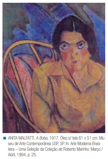 Por que essa obra, juntamente com outras da mesma exposição, despertou tão grande fúria na sociedade paulista da época? As manifestações artísticas da Semana de 22 aconteceram em meio a vaias e críticas de jornais que se mostraram contra o evento, foram chamados de loucos e construtores de uma Arte sem equilíbrio. Na sua opinião, qual foi a intenção desses artistas? A partir dessa Semana, de verdadeiras afrontas ao estilo de Arte respeitado na época, surgem vários grupos a favor dessa Arte nova que se firmam por meio de alguns manifestos.