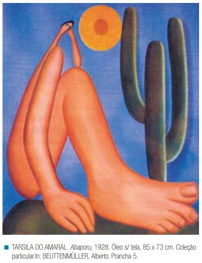 Observe a obra O Abaporu – palavra que significa em tupi, “aquele que come” – de Tarsila