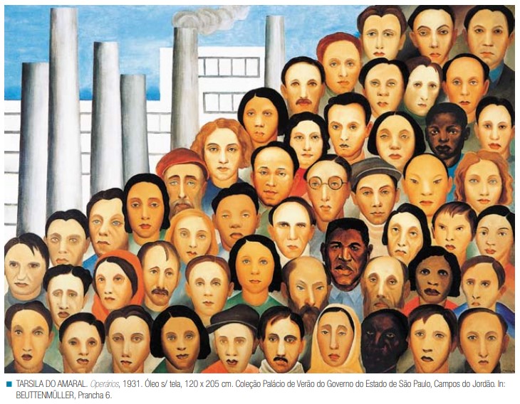 O que mais chama a atenção nessa obra? Por que parece tão estranha uma figura com a cabeça tão pequena em relação ao tamanho do corpo e dos pés? Essa artista rompe com a representação da figura humana de acordo com o cânone clássico? Por que na opinião de Oswald de Andrade “só a antropofagia nos une”? Quais as consequências do conselho de D. João VI, contido nos trechos do Manifesto Antropofágico, a seu filho D. Pedro para o Brasil?