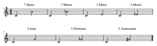 Segundo o exemplo, vemos que mesmo que tenham intervalos com a mesma distância eles, ou seja, nos exemplos vemos intervalos com notas iguais. Possuem a mesma distância mas, podem ser qualificados de forma diferente. Como por exemplo: (7 Maior, 7 Menor), (3 Maior, 3 Menor), (5 Justa, 5 Diminuta, 5 Aumentada, dentre outros…)