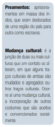 Tanto os colonizadores espanhóis quanto os portugueses empreenderam grandes preamentos de índios com o objetivo de os forçarem ao trabalho nos engenhos de açúcar, como no desmatamento para a expansão e ocupação das terras, entre outras atividades no Brasil Colônia. O contato e a interação social entre o índio e o branco foi, e ainda hoje é, de altos e baixos. De amizade e de inimizade, de concordância e de não-concordância, de uma cultura ser mais valorizada que a outra e se sobrepor a esta. Uma das consequências do contato foi um forte processo de mudança cultural, sofrida pelos povos nativos no Brasil e no mundo.