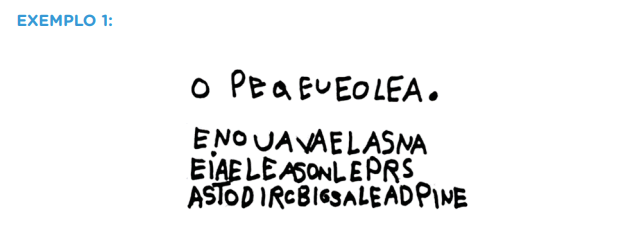 Ao escrever esta parlenda, o aluno nos mostra que erra porque não domina o sistema de escrita alfabética. Pouco adiantará o professor intervir, corrigindo todas as palavras erradas e todas as letras que faltam, pois o aluno precisa realizar uma construção conceitual. Essa construção é indispensável para que ele domine uma questão básica: o princípio alfabético.