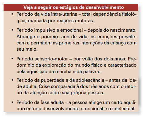 Wallon começa a descrever as etapas do desenvolvimento mostrando a importância do período da vida intra-uterina. Nesse período, a criança encontra-se em uma total dependência biológica do organismo materno, mas já se faz presente no meio social por meio dos seus movimentos. Você que já teve neném, que já acompanhou a gravidez de alguém, com certeza já curtiu sentir “as mexidas” da barriga da mulher grávida.