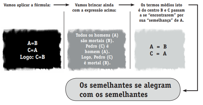 O silogismo , mais simples, é formado por três afirmações (assertivas). Já estou dizendo com isso que há outras formas de silogismo. Mas tomo o mais simples para exemplificar, mostrando como Aristóteles tenta isso. Vamos partir assim de um exemplo bastante comum: