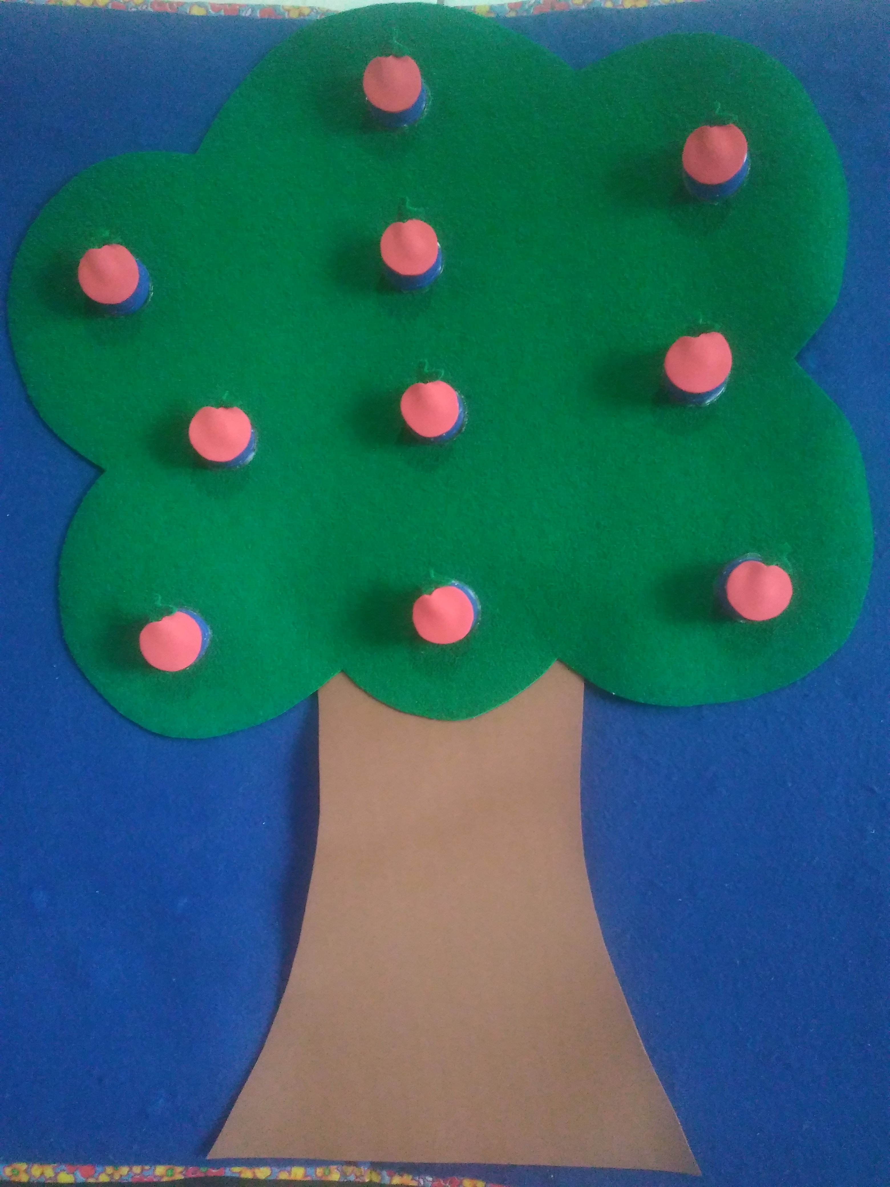 O Jogo da Árvore é uma atividade lúdica e educativa projetada para crianças na Educação Infantil. Este jogo consiste em uma estrutura feita de EVA, um material fofo e leve, que simula uma árvore. A árvore é equipada com **bicos de garrafas PET**, especificamente a parte das garrafas que possui a rosca para a fixação das tampas. Esses bicos são cobertos por pequenas maçãs, criando um ambiente de aprendizado divertido e interativo para as crianças.