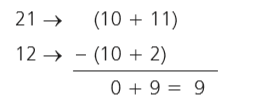 subtrair dois números, em especial quando os números têm duas ordens, indo além do algoritmo convencional, como, por exemplo: Suponha que ao arremessar duas vezes a bola, um aluno tenha obtido as seguintes quantidades, e,