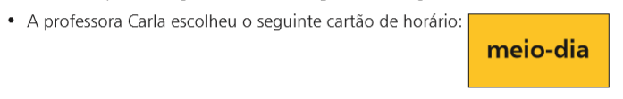 – O professor sorteia ou escolhe um dos cartões com um horário.