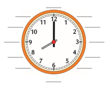 • Na sala de aula de Lúcia, há um relógio como o da figura abaixo. Certo dia, o relógio parou de funcionar porque a energia da pilha acabou. Observe o horário em que o relógio parou.