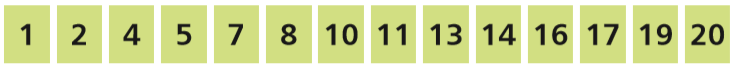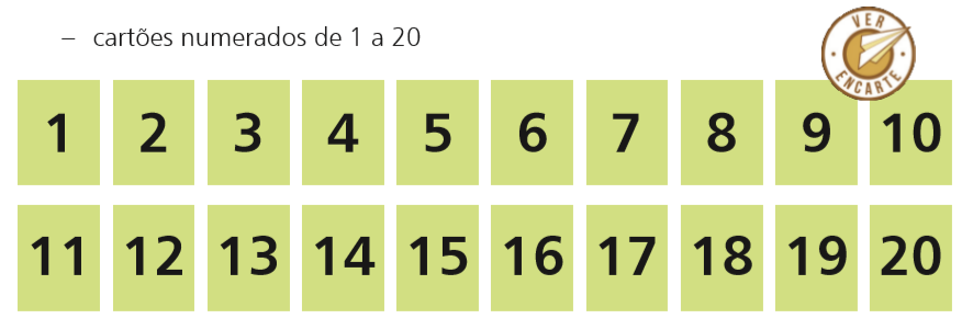 – Depois de várias rodadas com a sequência numérica de 1 a 10, o professor repete o jogo com todos os cartões, ou seja, de 1 a 20.