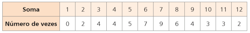 De acordo com o quadro: Quais as somas que menos foram obtidas?