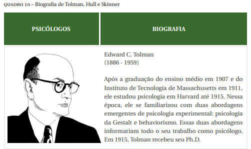 Como vimos Watson foi o precursor e o pai da psicologia comportamental, porém, aproximadamente entre 1930 e 1960 englobando trabalhos de Tolman, Hull e Skinner, conforme Quadro 10, o behaviorismo sofre mudanças. Buscando elevar o conceito do behaviorismo eles se juntaram para estudar a aprendizagem, os comportamentos entendidos pelas leis do condicionamento e o princípio do operacionismo. Assim, o behaviorismo chama-se Neobehaviorismo.
