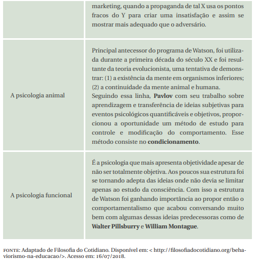 Na segunda metade do século XX a ciência já não comportava as mesmas concepções, fez-se necessário uma profunda reavaliação incluindo a psicologia, como conceituado na Figura 30. O funcionalismo foi de caráter mais evolucionário dentro dessa necessidade, pois os líderes (filósofos, psicólogos, educadores, pensadores) não desejavam mudar o passado escrito, mas sim buscar uma nova psicologia qual abordasse estímulos e respostas; o comportamental, onde houvesse bases observáveis e passivas de descrições objetivas ou, resumindo, uma psicologia científica.