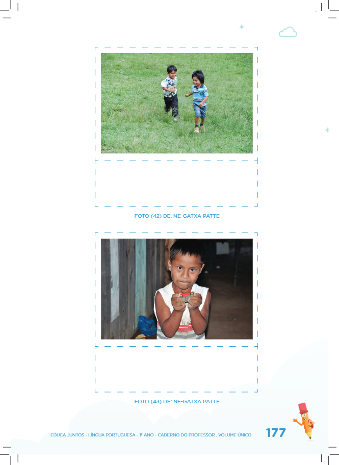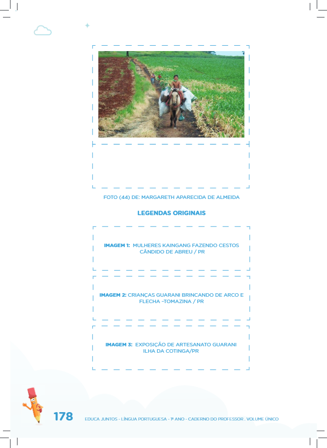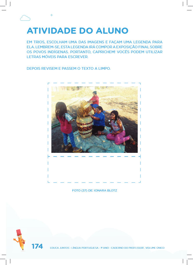 - É possível que as crianças produzam legendas com ausência de informação ou sem especificar o povo indígena. Você poderá informar o nome do povo, mas não é o caso de fazer legenda idêntica à original. A referência é apenas para sua consulta no intuito de verificar a coerência da produção da criança e as informações sobre o povo.