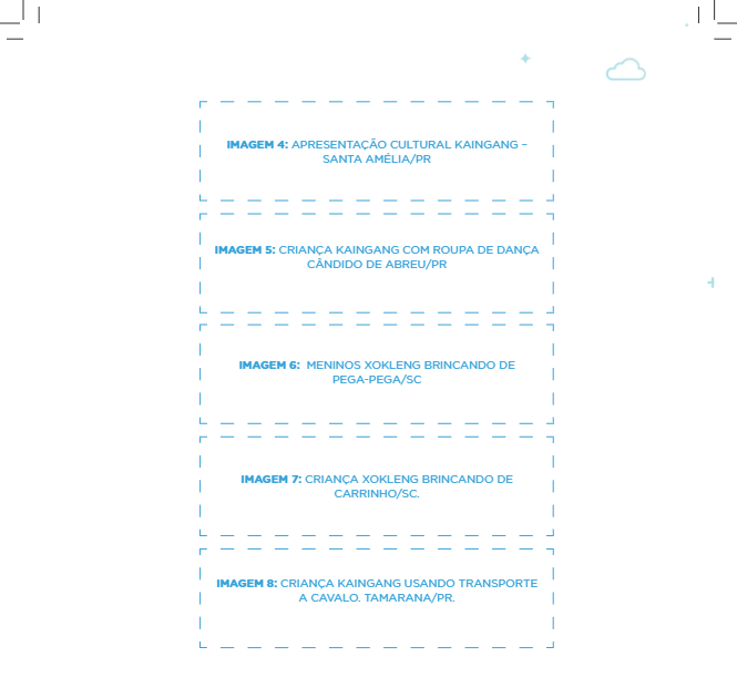 - Você poderá disponibilizar outras imagens retiradas de livros e da internet. Neste último caso, cuide para que a imagem seja de povos do Brasil e que possua a identificação do nome do povo para você informar à criança, se necessário.