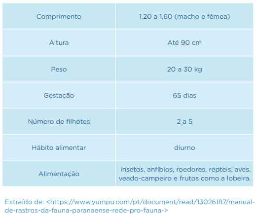 - Apresente o texto com informações técnicas sobre o lobo-guará, presente na Coletânea de Atividades, para que os alunos possam localizar as informações mais importantes sobre o animal.