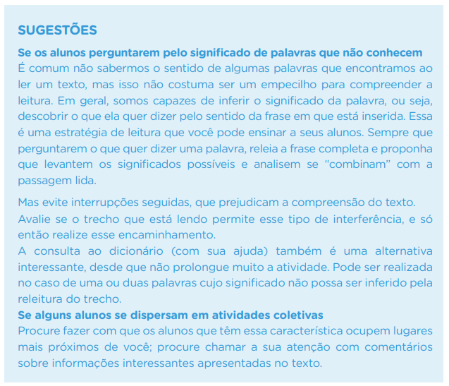 - Converse com os alunos sobre aquilo que aprenderam nessa primeira leitura e sobre as informações que mais lhes chamaram a atenção.