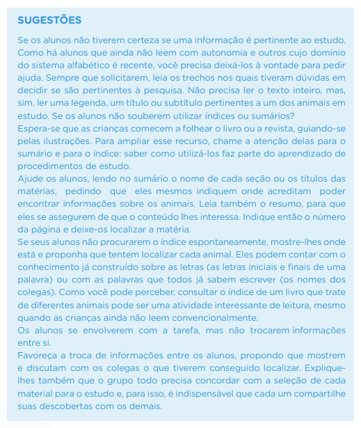 - Utilizar estratégias de leitura para localizar informações em textos de divulgação científica (índice, ilustrações etc.), mesmo antes de saber ler.