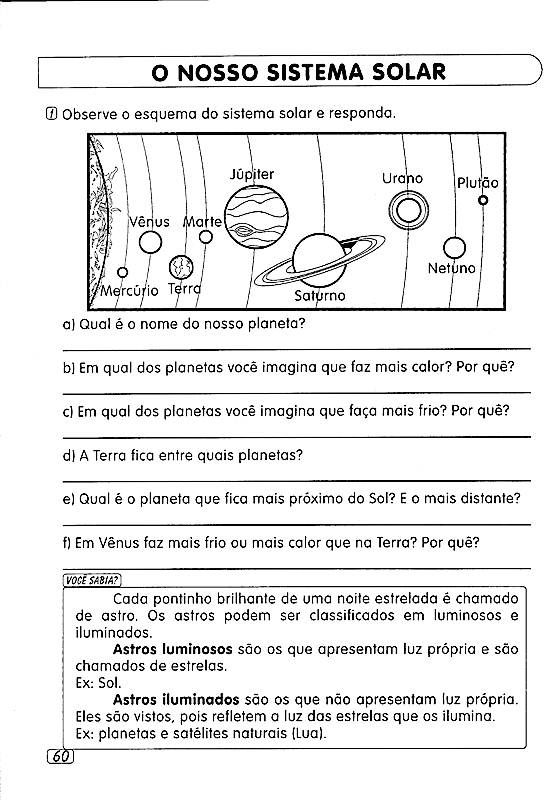 Em seguida, o professor (a) irá propor uma atividade em que os alunos irão responder algumas questões a respeito do sistema solar.
