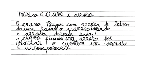 É preciso uma ação didática específica que problematize as escritas erradas e ajude os alunos a compreender a separação, refletir sobre ela e ampliar seu olhar. Há um longo percurso até que as crianças alfabetizadas aprendam a segmentar convencionalmente todas as palavras de um texto. Ainda que compreendam logo como separar a maioria das palavras e utilizem tal conhecimento em seus textos, é comum que, durante algum tempo, continuem a manter separadas as “palavras pequenas” (artigos, preposições, conjunções, pronomes etc.).