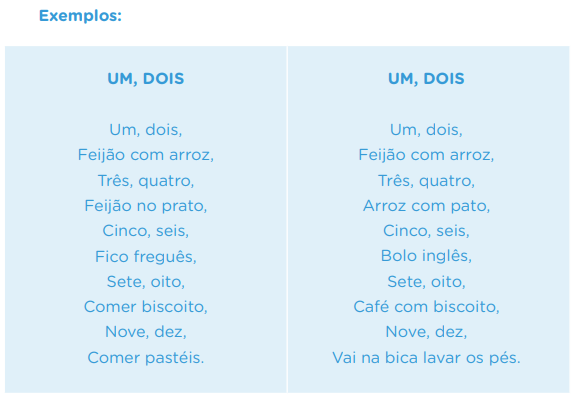 - Solicite que algumas duplas leiam a parlenda produzida.