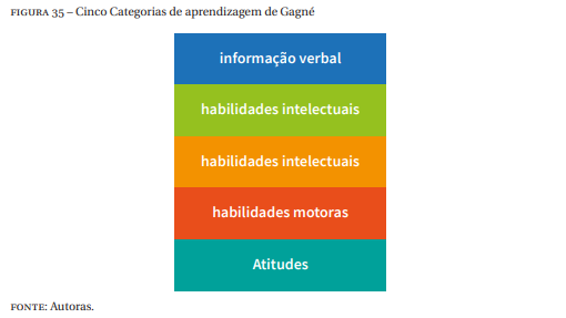 Gagné identifica cinco categorias de aprendizagem conforme Figura 35, segundo (FERNANDES, 2015).