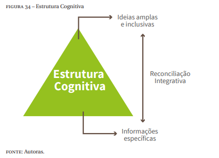 A Estrutura cognitiva é uma estrutura hierárquica de conceitos que são abstrações da experiência do indivíduo (MOREIRA et al., 1997). Para Moreira (2008) novas ideias e informações são aprendidas e retidas na medida em que existem pontos de ancoragem. Logo, para o autor, a aprendizagem significativa ocorre quando uma nova informação aporta-se em conceitos relevantes preexistentes na estrutura cognitiva de quem aprende, na Figura 34 é apresentado a estrutura cognitiva.