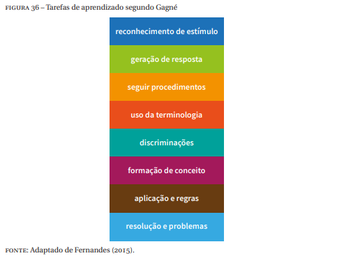 Segundo Fernandes (2015) Gagné sugere que tarefas de aprendizado para habilidades intelectuais podem ser organizadas em hierarquia, de acordo com a complexidade, conforme Figura 36.