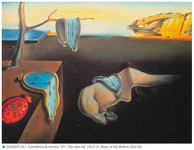 A obra de Salvador Dali mostra os relógios derretendo numa praia sob o calor do sol. Um deles pende amolecido de um galho de uma árvore e outro atrai uma infestação de formigas. Todos os dois marcam horas diferentes, sugerindo o retrato de um mundo incerto. Seria um mundo real ou um mundo de sonhos?